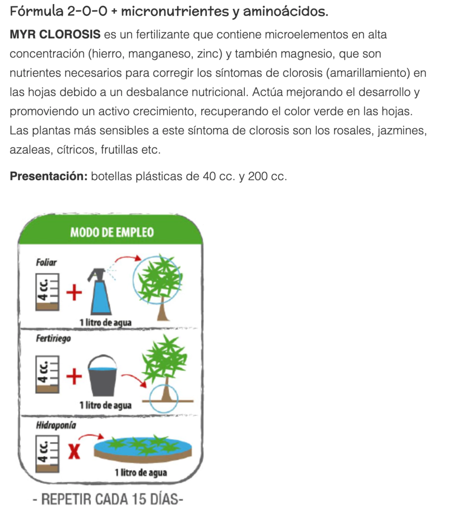 Usar al detectar síntomas tempranos de clorosis para mejores resultados.